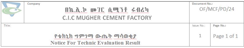 • ከላይ በተገለፀው ውጤት ቅሬታ ያለው ተጫራች ማስታወቂያው በተገለፀበት አምስት ቀናት ውስጥ ቅሬታውን ማቅረብ የሚችል ሲሆን ከዚህ ውጭ የሚቀርብ ቅሬታ ተቀባይነት የሌለው መሆኑን እናስታውቃለን።